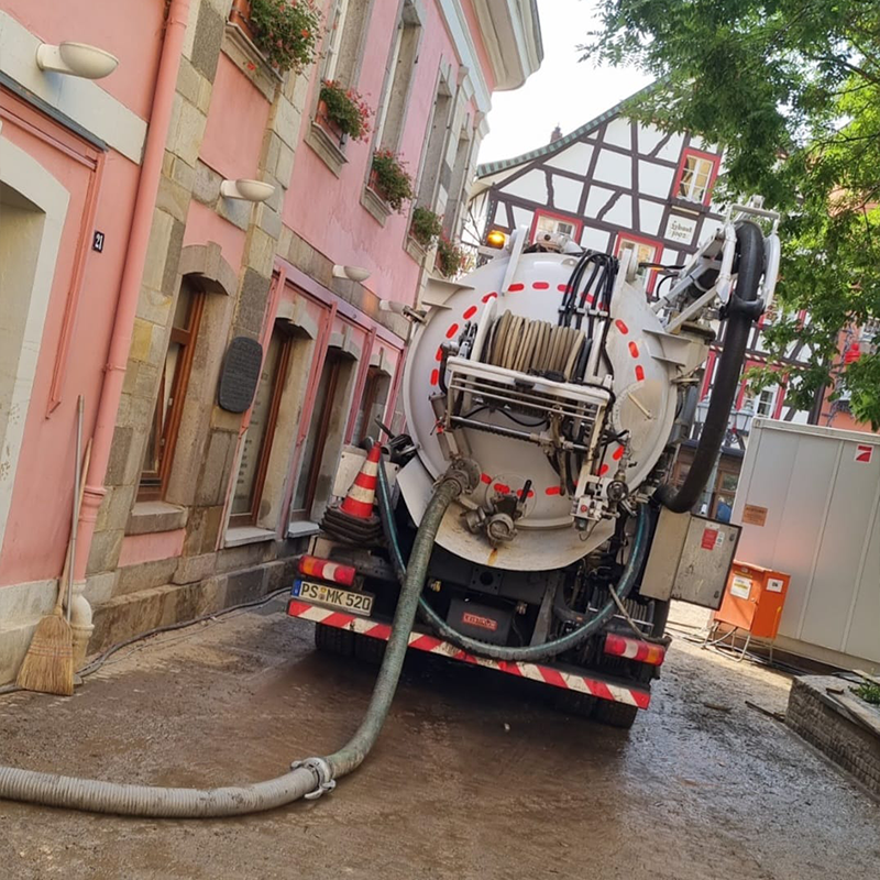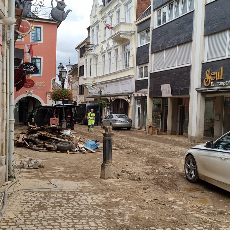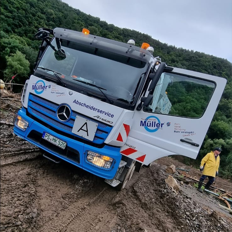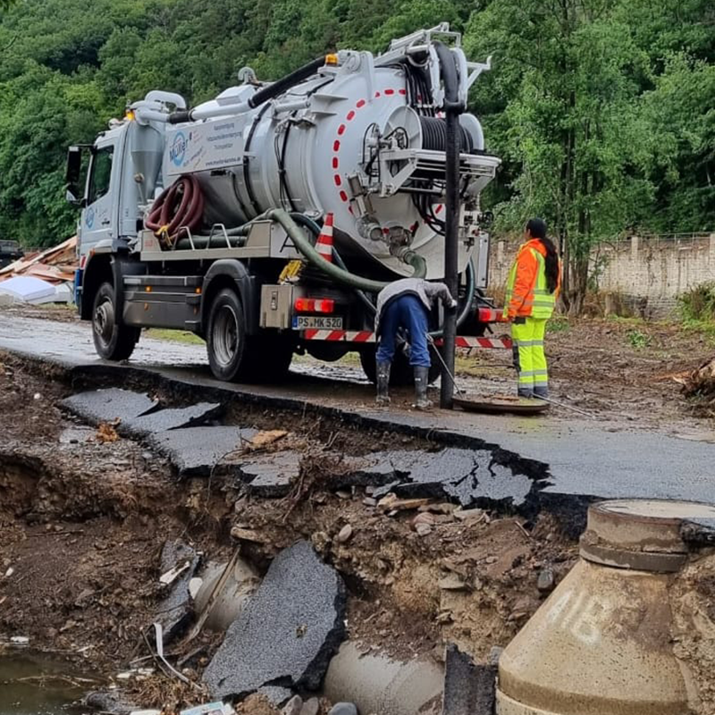 Mit unserer Firma Thomas Arnold Müller KaRo-Tec UG waren wir vor Ort, um beim Aufräumen zu unterstützen. Gemeinsam mit vielen anderen Helferinnen und Helfern packten wir an, um die enormen Mengen an Schlamm und Schutt zu beseitigen. Wir standen mit den Betroffenen in ihren Häusern, halfen beim Aussaugen der verschlammten Räume und reinigten Kanäle mit unserem Spül-LKW, damit zumindest die Grundversorgung möglichst schnell wiederhergestellt werden konnte.